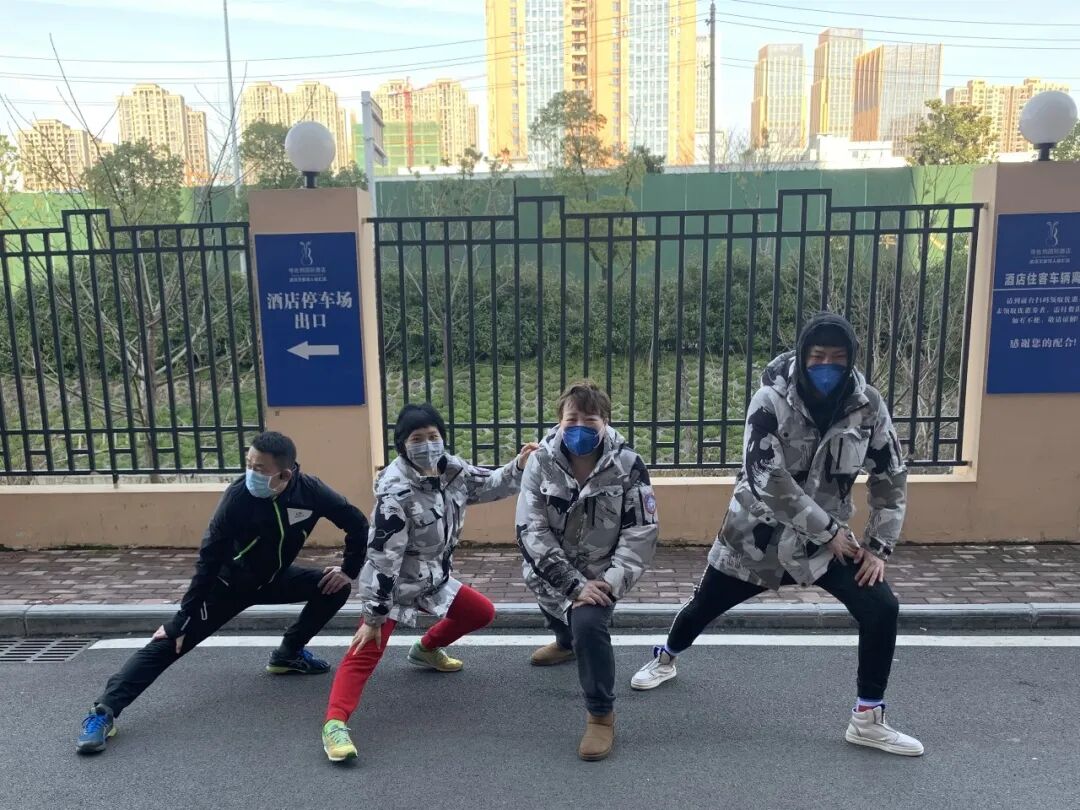 我们现在就是两点一线,医院---驻地(酒店),一切都变得平静,周而复始重复着昨天同样的事。武汉天气逐渐变暖,我们队就利用休息时间来调整自己身体,我们队有个帅气医生兼运动主教练---王柳,他负责我们队体能训练,提高自己的代谢率,增强自身体抗力、缓解疲劳和压力,因为我们知道只有自己身体好,才能救治更多患者。梁颖姐就是我们队知心大姐,对我们生活还是心里上都照顾的无微不至,表现出大姐大的风范。每逢佳节倍思亲,我们第一次离开亲人,背井离乡在这种特殊的时期,当千家万户团团圆圆、欢笑满颜时,我们的那种孤独感愈加强烈。我不敢和家里人视频聊天,怕眼泪控制不住对家人的思念,只能静静的躺在床上。就在我收到姑娘的祝福和发来红包时,我坚强的心、强忍的泪水顿时融化了,眼泪一粒一粒从眼眶里掉下来。这时大姐主动邀请我们视频聊天,我怕姐妹们看到,擦干眼泪整理好自己情绪,接听,打开视频那一幕,我们都伪装坚强的样子暴露出来,看到大家我们都笑得哭了,每个人眼睛都哭的红肿,说话哽咽,都气愤说着自己完蛋,没控制住。影子姐,安慰我们每个人的情绪,体现出大姐照顾妹妹那种关爱。影子姐就像一个影子一样一直在我们身边,当我们遇到不顺心、需要心灵上的寄托时,我们就会想到影子姐。现在我们睡前都已经习惯每天视频聊天,畅想着回家乡以后想吃的美食,火锅、烧烤、红烧肉、东北锅包肉等…每晚睡前都说一句明天继续加油!李刚主任那更是心细如发,从出发前的准备物品,小到指甲刀。到武汉后,在生活和工作上对我们的照顾,让我们感受到大哥哥般的呵护。我们第一次上岗前一遍一遍的叮嘱,讲解在病房里遇到突发事件,如(护目镜脱落怎么办、手套划破等)这些意外的处理方法,让我们心里别紧张,别慌乱。时刻了解我们每个人身体状况等。