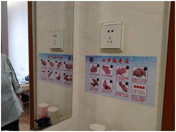 护理部统一设计制作的“七步洗手法”及“咳嗽和喷嚏礼仪”宣传画,按医院统一7S管理要求,张贴在病房的洗手间的固定位置,方便患者及陪护观看。