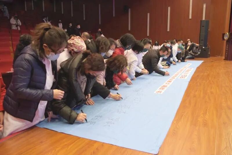市中心医院医务人员主动请缨,纷纷上前在支援武汉的请战书上签名